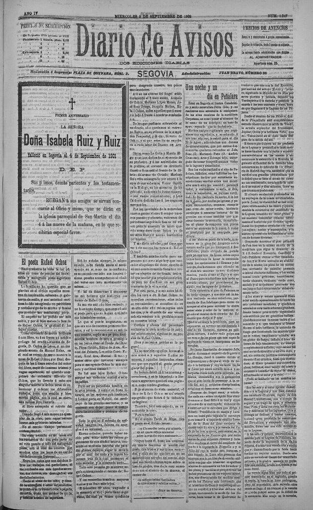 El porvenir segoviano : diario de avisos de Segovia: Año IV Número 1247 – 1902 septiembre 3